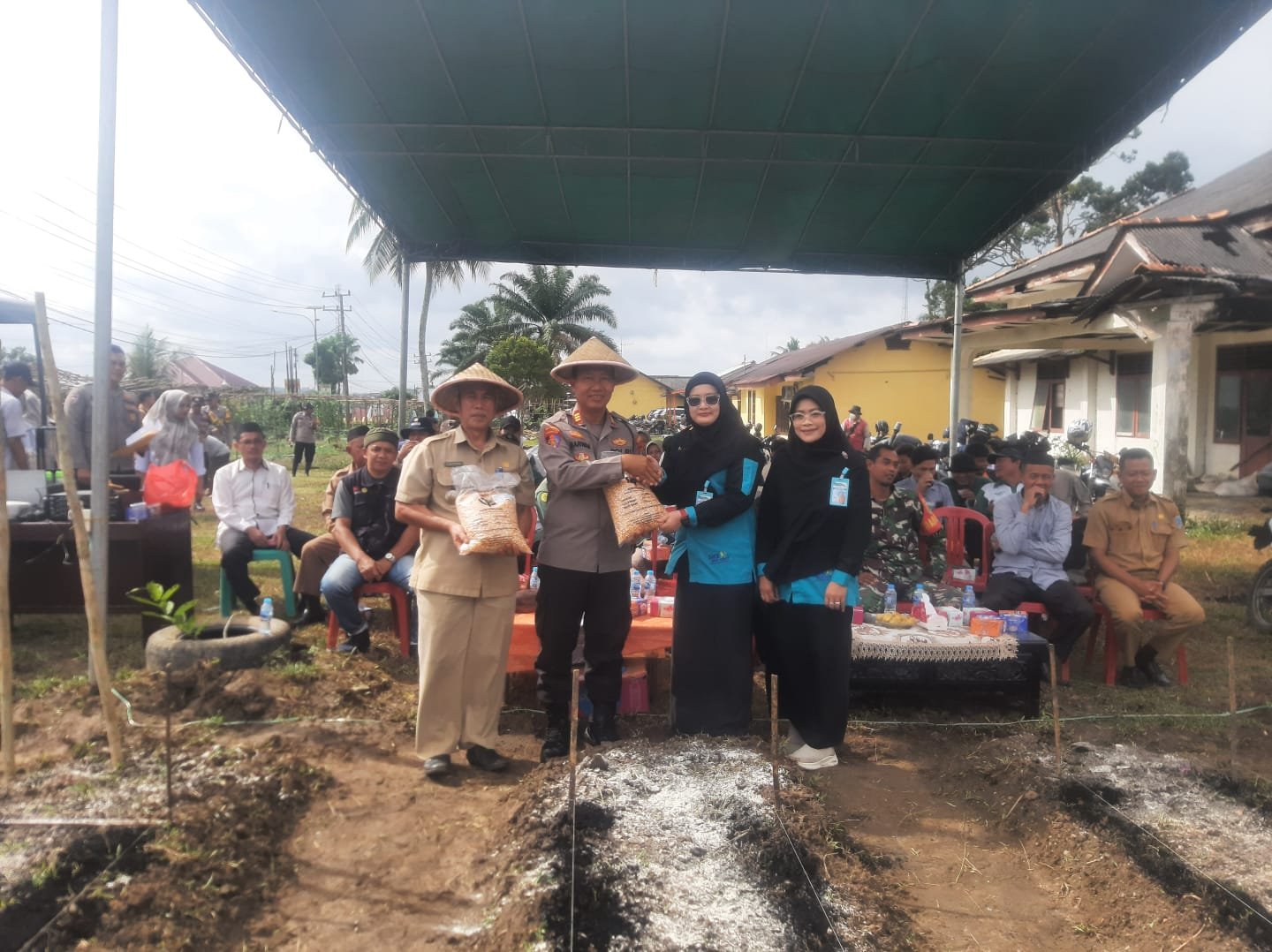 Kapolsek Mendo Barat bersama masyarakat setempat melaksanakan kegiatan penanaman jagung serentak di lahan ketahanan pangan tumpangan yang terletak di Kecamatan Mendo Barat, Kabupaten Bangka.