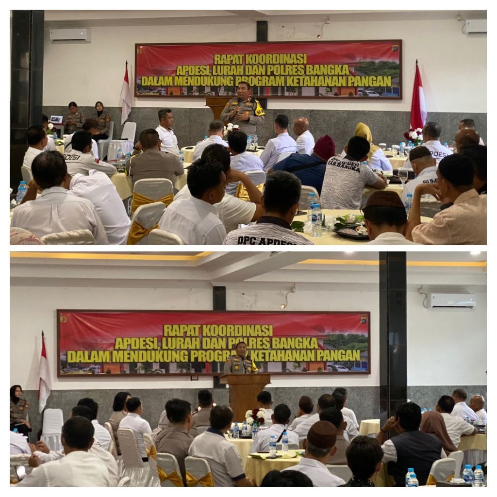 Media SalamBangkaBelitung.online Sungailiat Bangka – Polres Bangka mengadakan rapat koordinasi (rakor) bersama Asosiasi Pemerintah Desa Seluruh Indonesia (Abdesi), para lurah, dan kepala desa dalam rangka mendukung program ketahanan pangan. Bertempat di Aula Tribrata Polres Bangka, Rabu (12/2/2025).