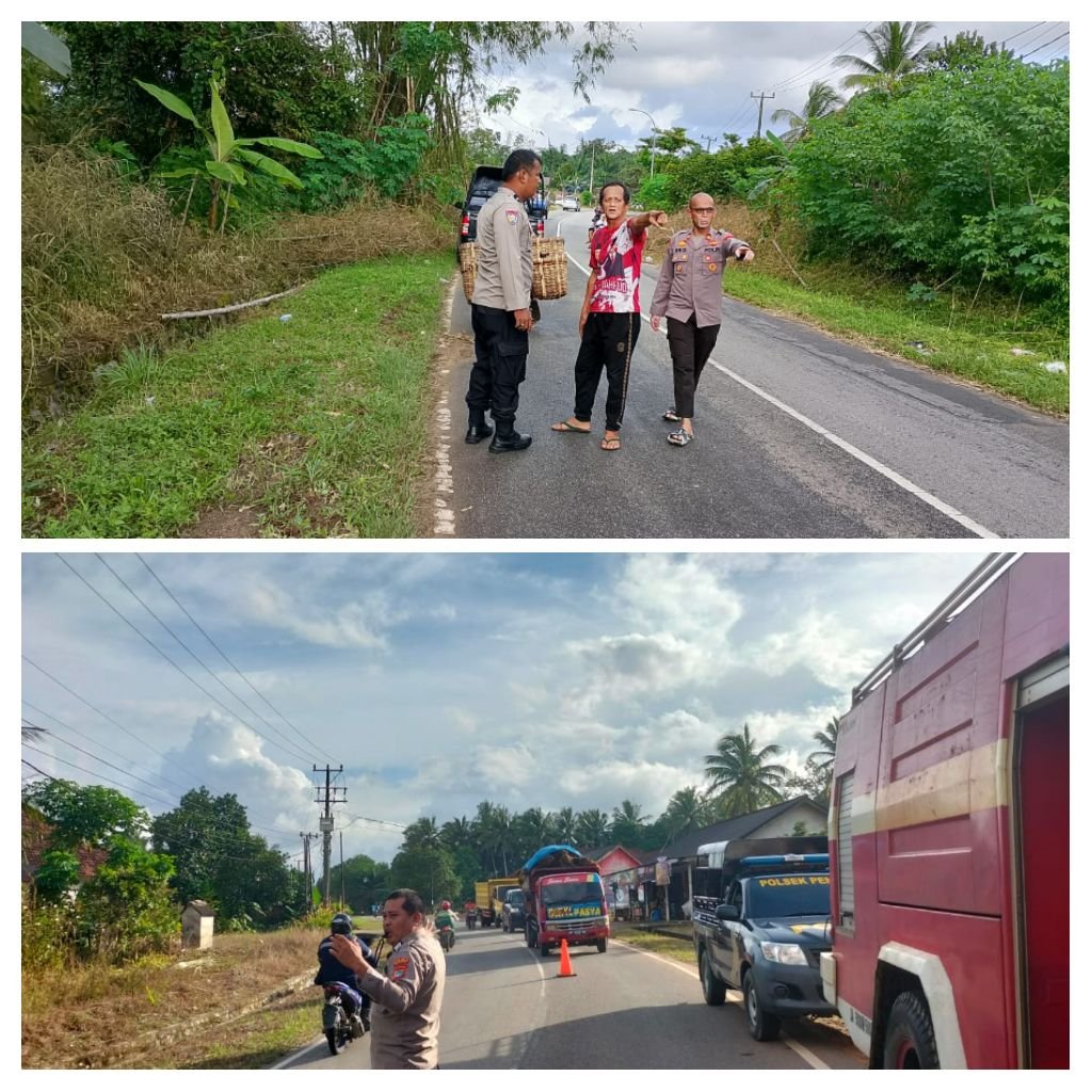 Polsek Pemali Tanggap Laporan Tumpahan Minyak di Jalan Raya Air Duren-Sempan